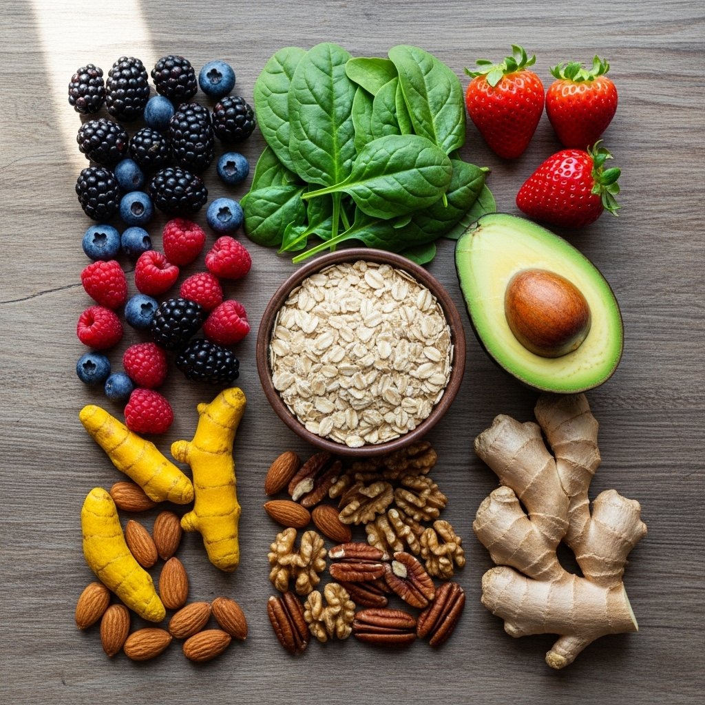Foods like berries, leafy greens, nuts, and fatty fish are highly effective.
