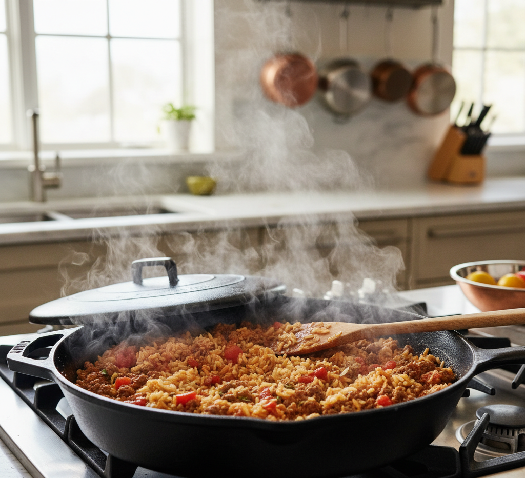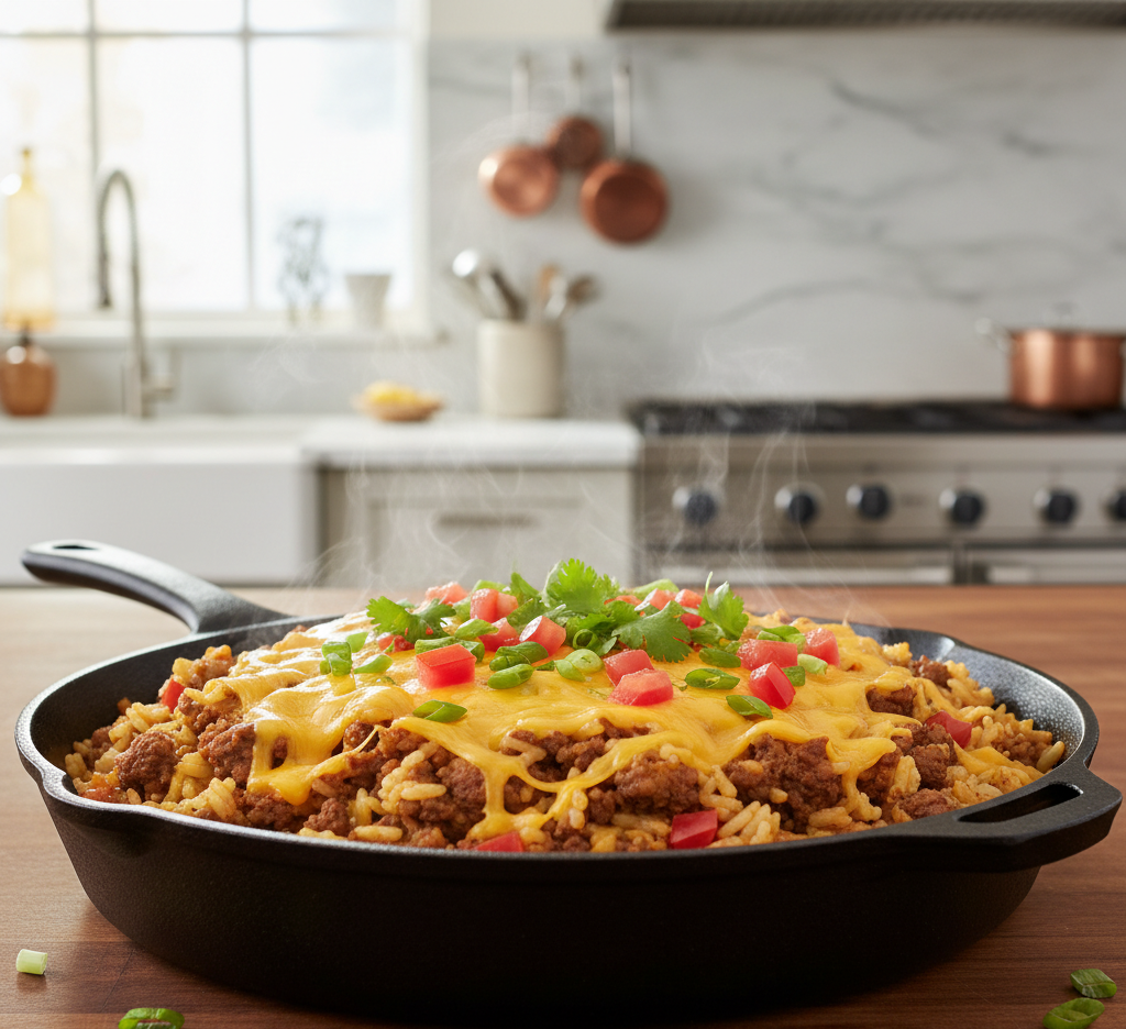 If you’re looking for a quick, satisfying dinner that delivers big flavor with minimal effort, this Cheesy Taco Rice Recipe is exactly what your weeknight menu needs. It combines everything you love about tacos—savory seasoned beef, fluffy rice, bold spices, and gooey melted cheese—into one hearty, comforting skillet meal.