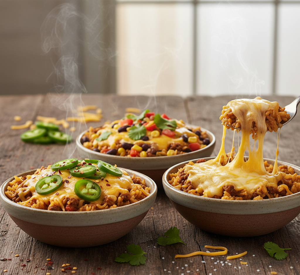 It’s the ultimate comfort food mashup—tacos meet cheesy rice casserole in the best way possible.