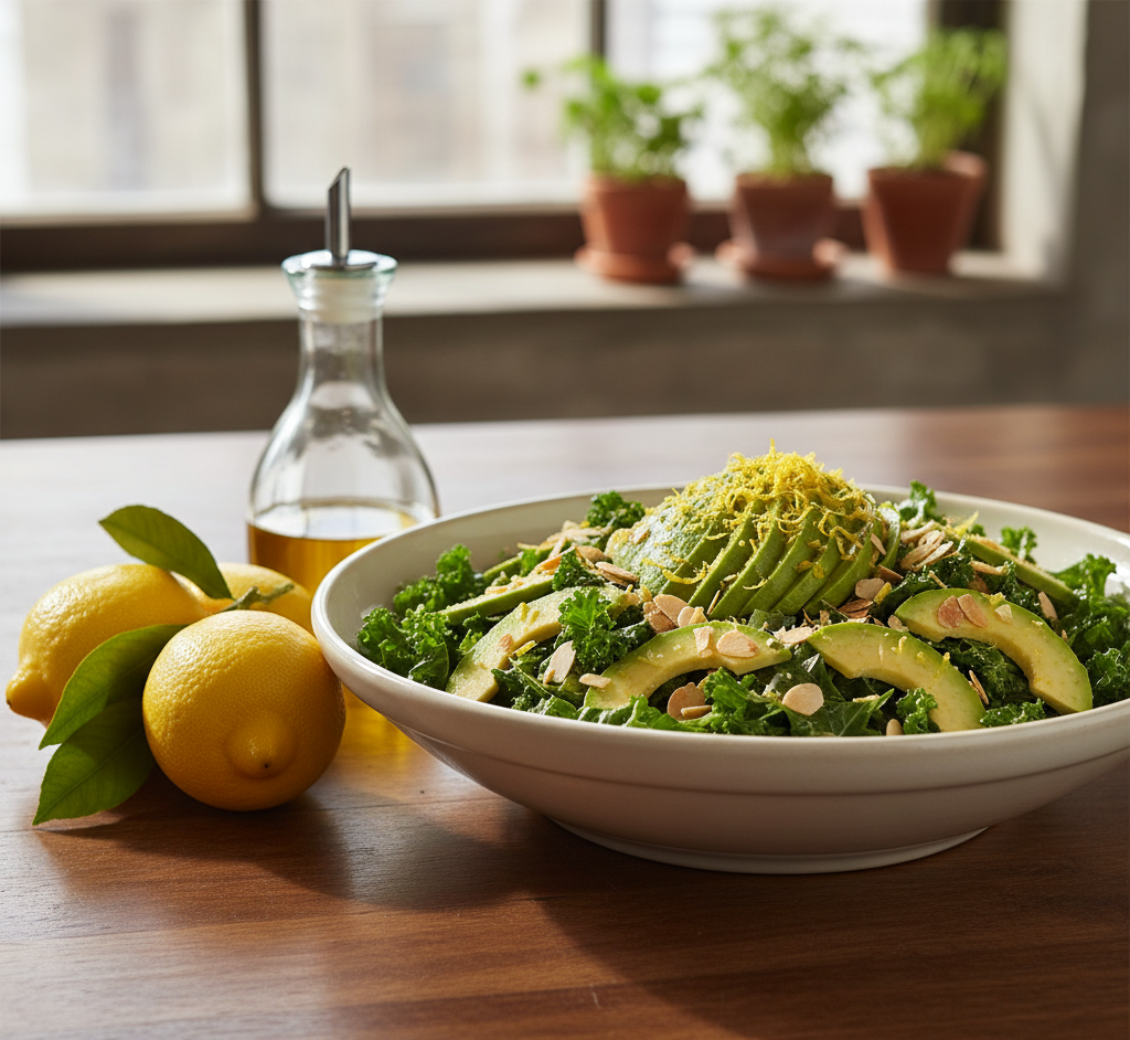 The combination of creamy avocado and zesty lemon dressing softens the kale and creates a beautifully balanced flavor profile.