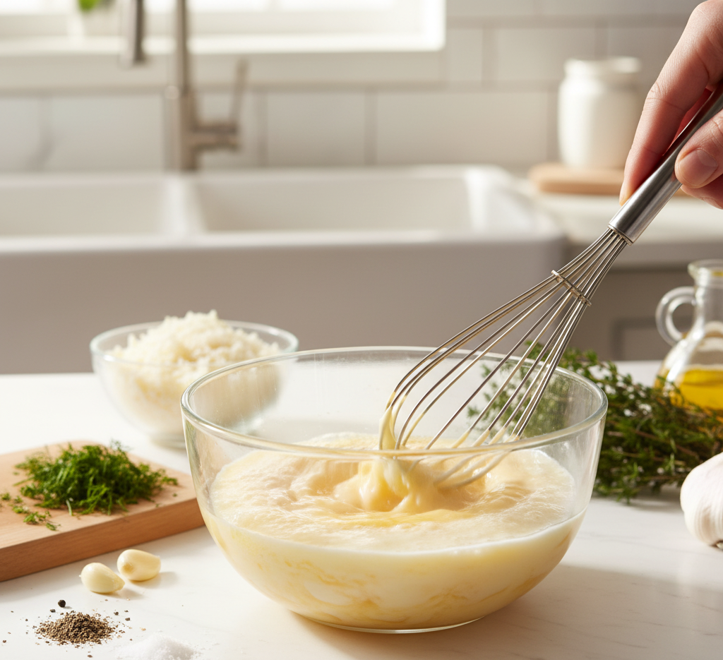 Whisk until the dressing becomes smooth and slightly emulsified.