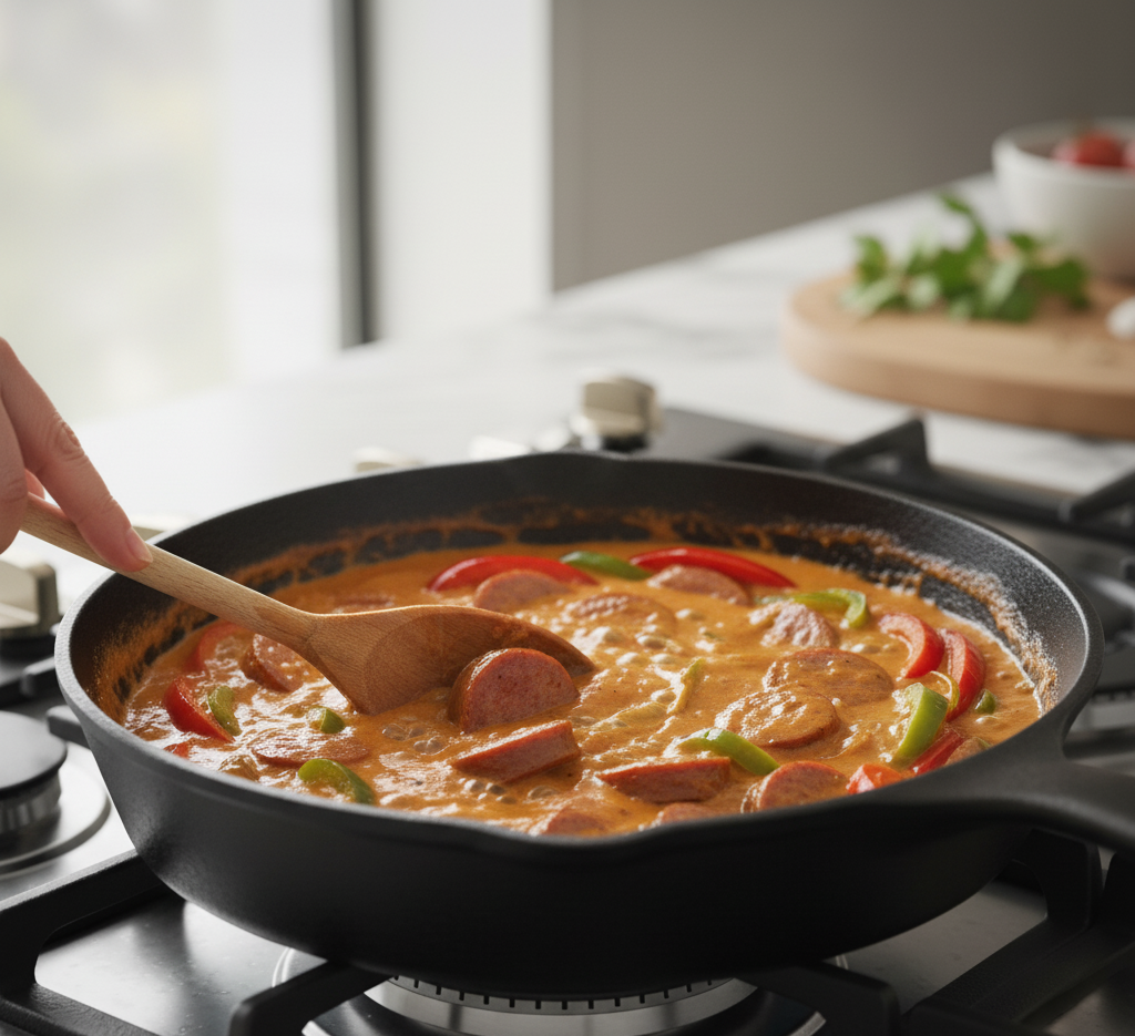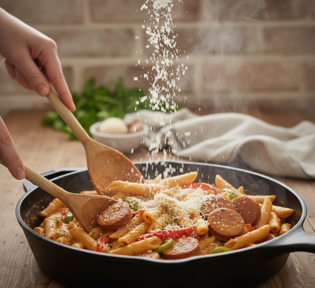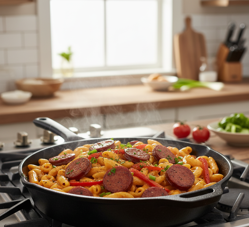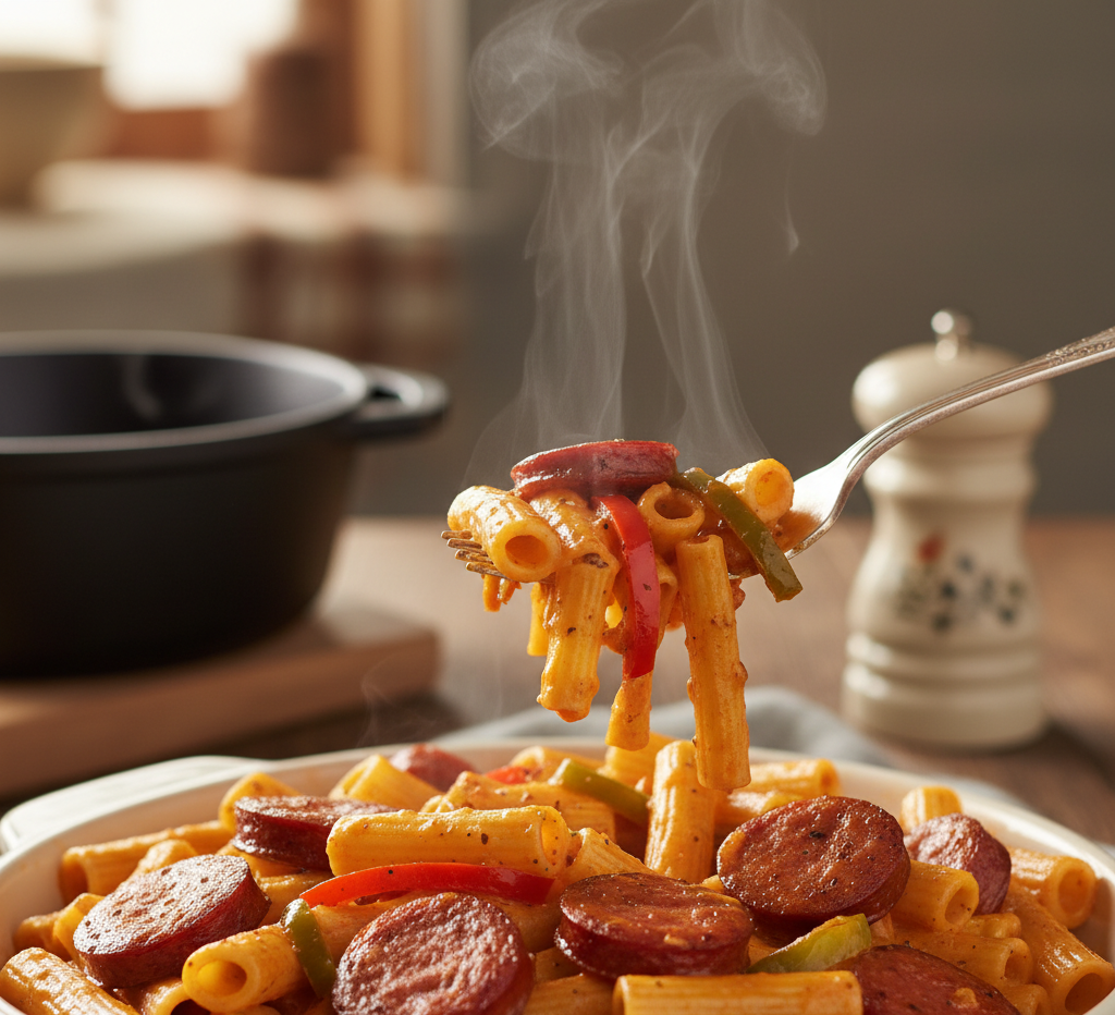 What makes this easy Cajun smoked sausage pasta so popular is its perfect balance of smoky, creamy, and slightly spicy flavors. The sausage adds depth, the Cajun seasoning delivers a gentle kick, and the creamy sauce ties everything together into a rich and satisfying dinner.