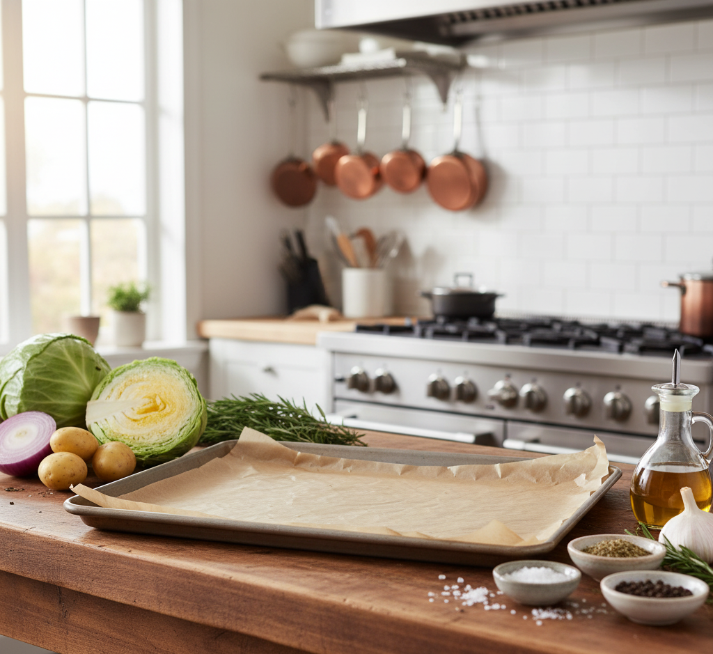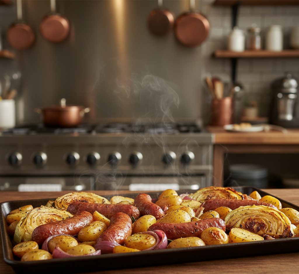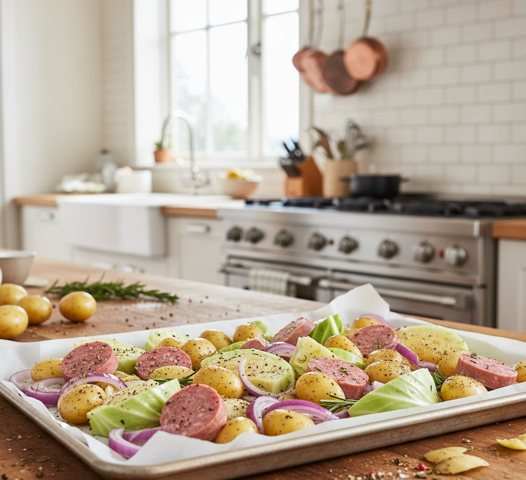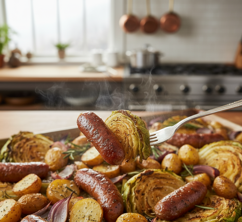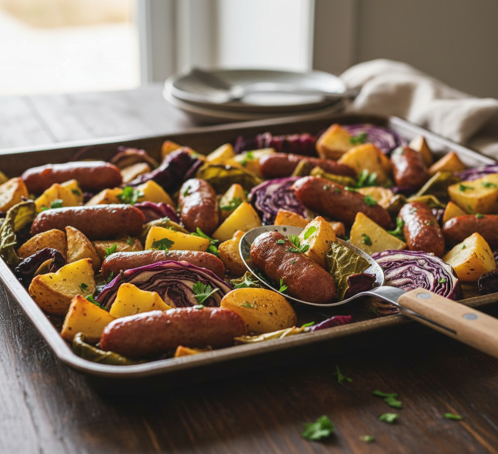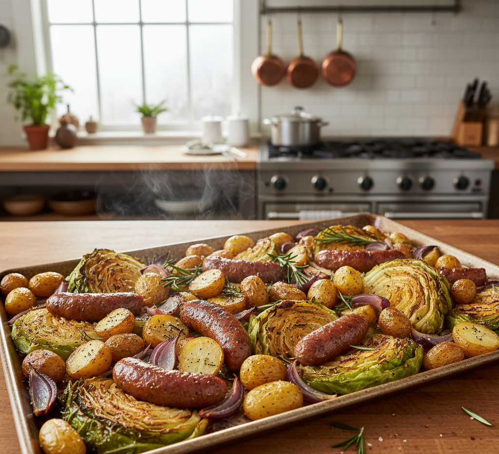 The beauty of a sheet-pan dinner is how effortlessly everything comes together. With smoky sausage, tender roasted potatoes, and slightly caramelized cabbage, this dish delivers a satisfying balance of flavors and textures. Everything roasts together in the oven, allowing the savory juices from the sausage to coat the vegetables and create a deeply comforting meal.