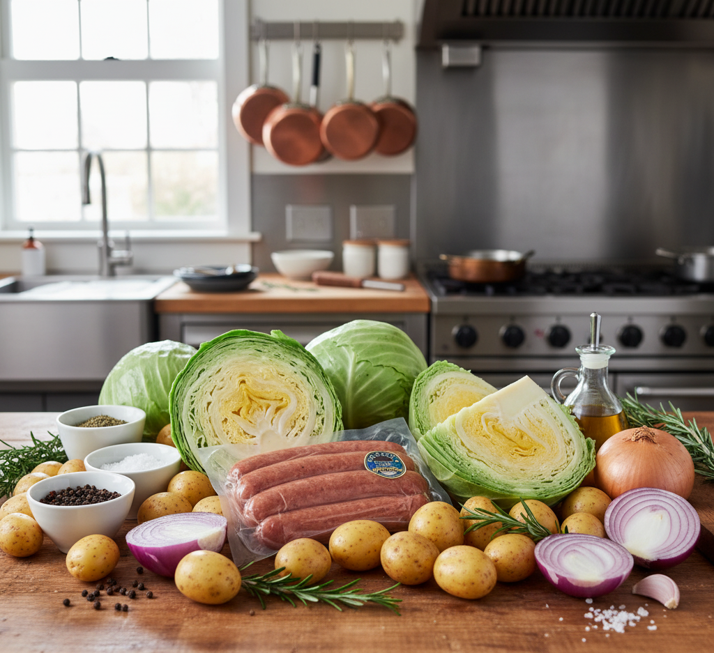 Ingredients for Sheet-Pan Sausage, Cabbage & Potatoes