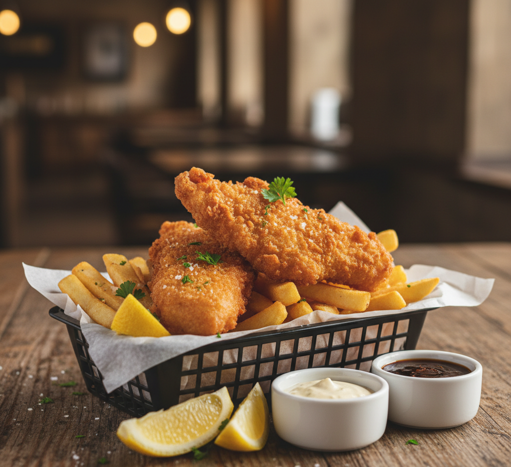 This pub-style recipe brings together light, airy beer batter with perfectly fried fish and classic thick-cut fries. Whether you’re planning a casual family dinner, game day meal, or just craving something indulgent, this recipe delivers authentic flavor and texture every single time.