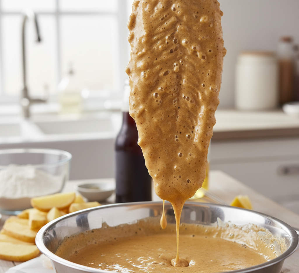White fish like cod or haddock is ideal because it’s mild, flaky, and holds up well during frying. The beer is just as important—it adds carbonation, which helps create that light, crispy texture in the batter. A cold lager or pale ale works best.