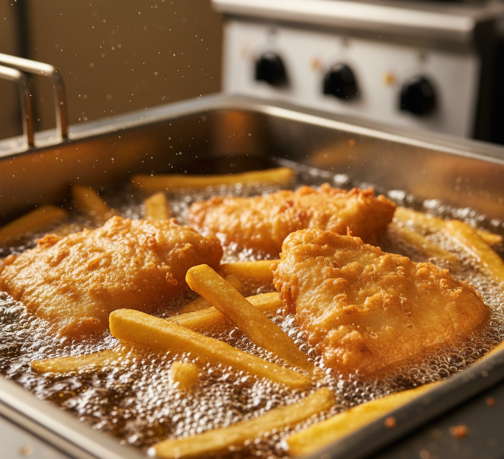 Heat oil to 350°F. Dip the fish into the batter, then carefully place it into the hot oil. Fry for 4–6 minutes until golden brown and crispy.