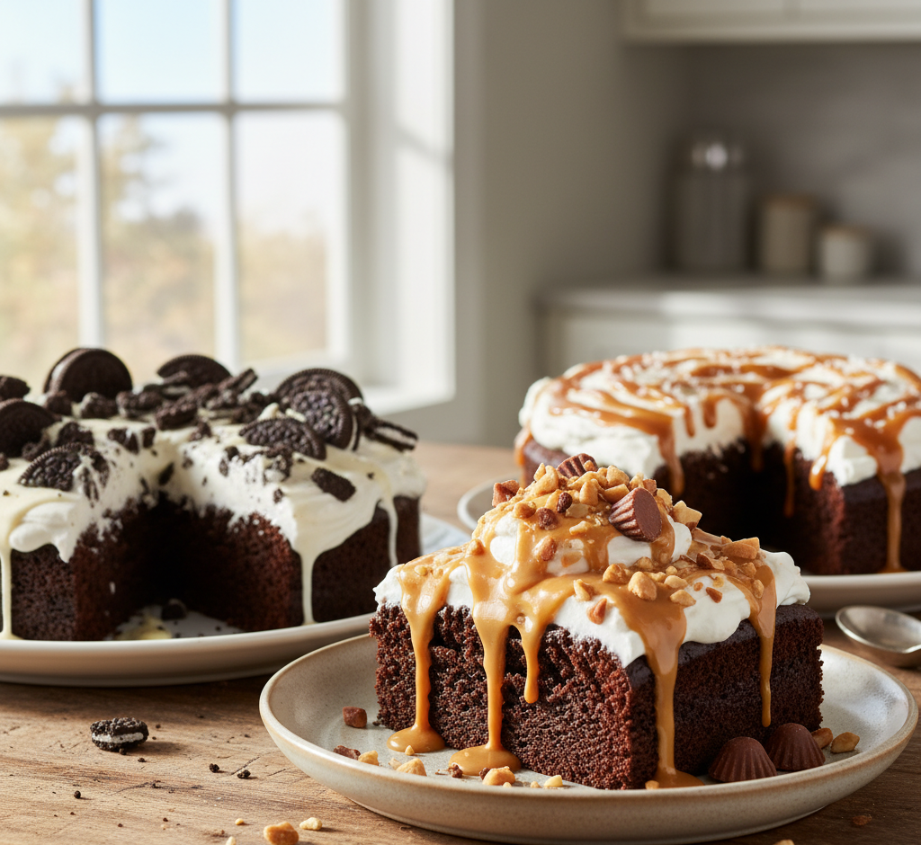 If you’re a true chocolate lover, this Death By Chocolate Poke Cake is about to become your new obsession. This dessert is everything its dramatic name promises—ultra-rich, irresistibly moist, and layered with deep chocolate flavor in every bite. From the soft chocolate cake base to the luscious filling that seeps into every hole, it’s a dessert that delivers pure indulgence.