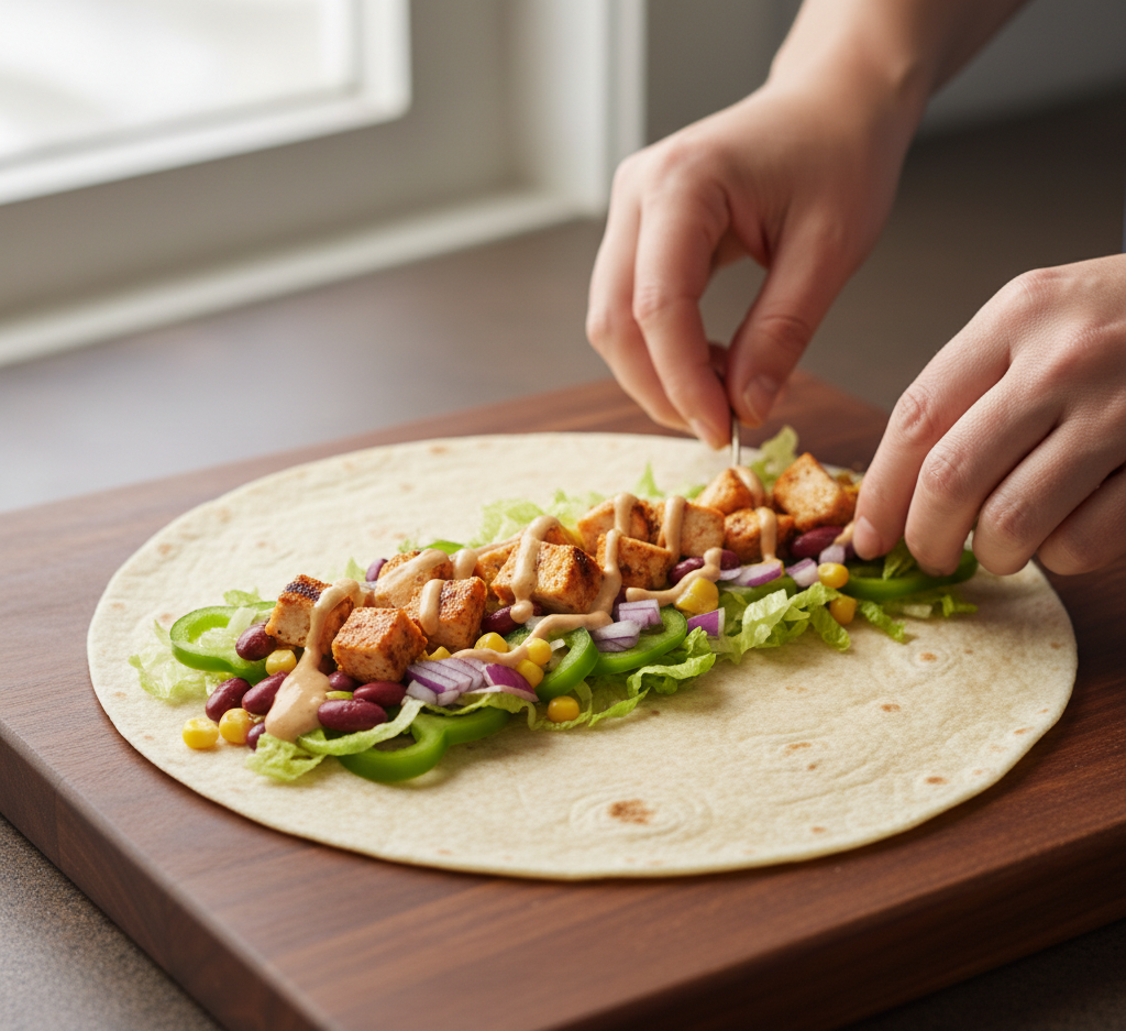 Slice and prepare vegetables for easy assembly and vibrant presentation.