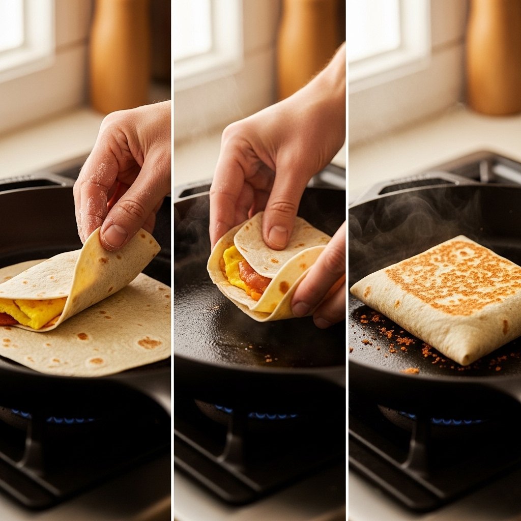 Carefully fold the edges of the tortilla toward the center, creating a sealed wrap.