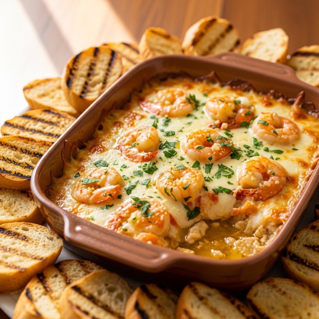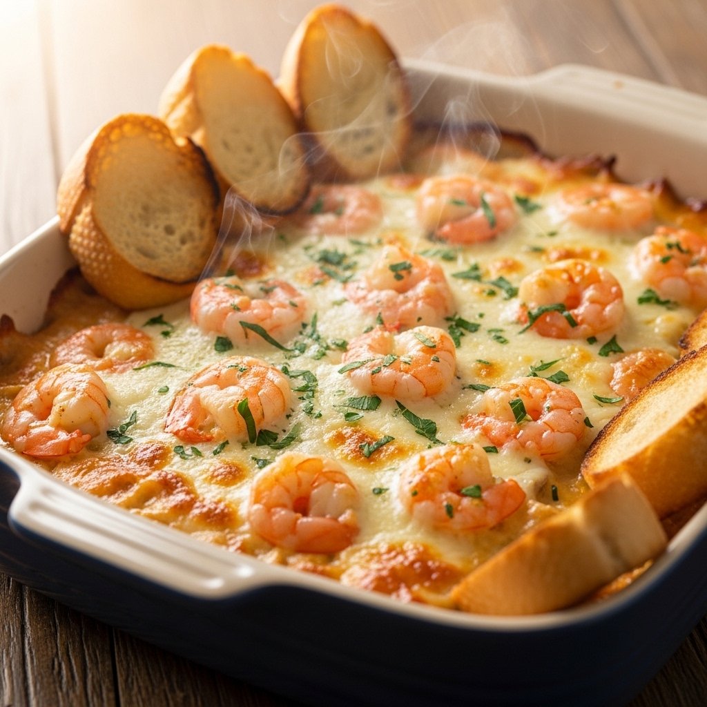 This shrimp scampi dip recipe is baked until hot and bubbly, creating a golden, cheesy top layer with tender shrimp folded into a velvety sauce. It’s perfect for holidays, game days, or any time you want a restaurant-style appetizer at home.