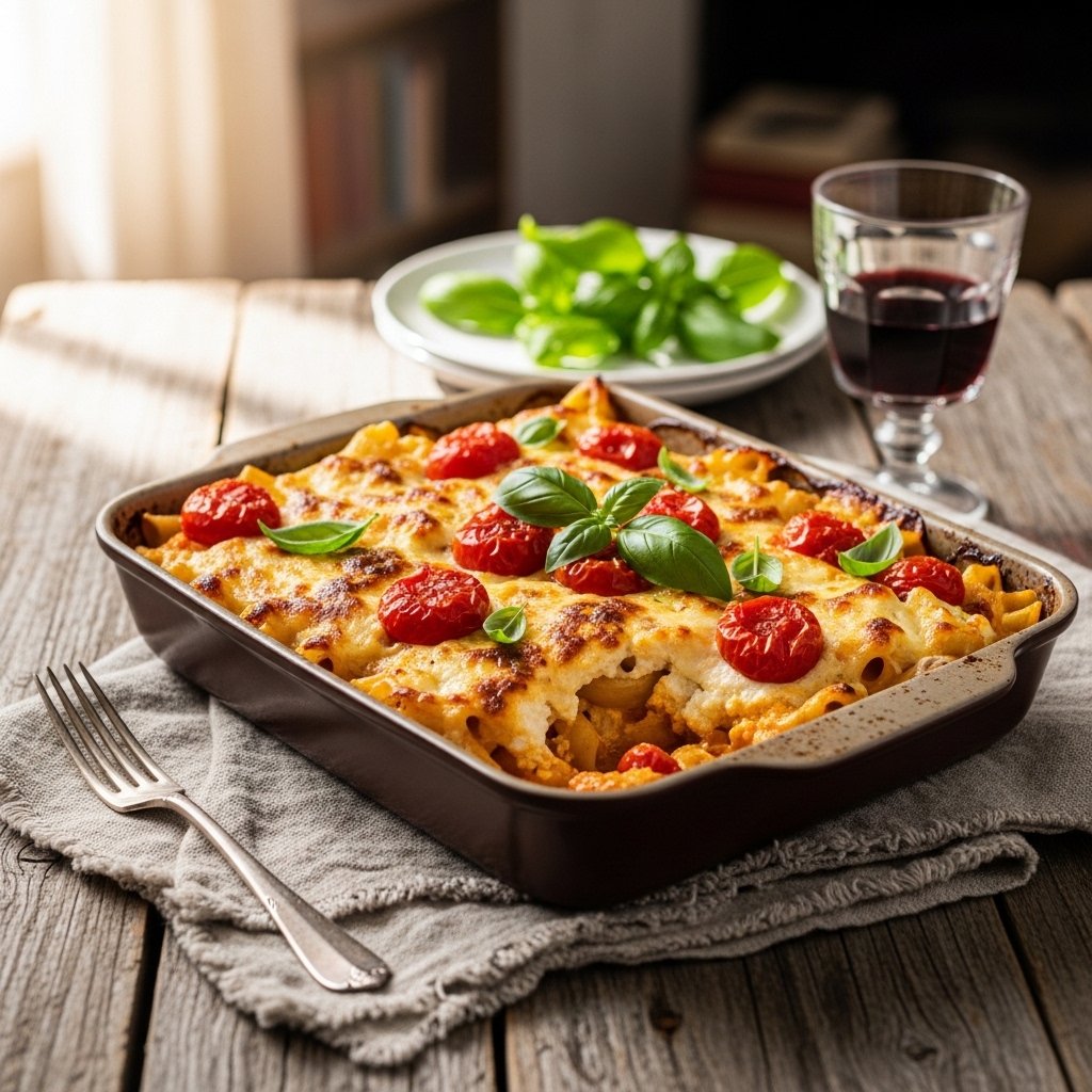 Transfer to a baking dish and bake at 375°F (190°C) for 15–20 minutes until bubbly.