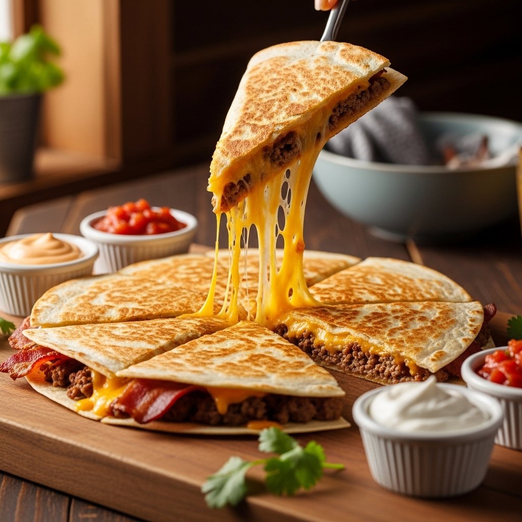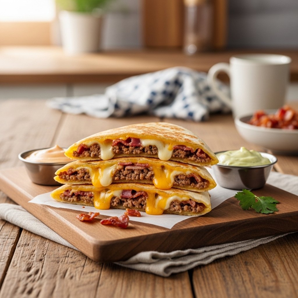 If you love both cheeseburgers and quesadillas, this Bacon Cheeseburger Quesadillas recipe is about to become your new favorite comfort food mashup. It combines juicy seasoned ground beef, crispy bacon, melted cheese, and classic burger flavors all tucked inside a golden, crispy tortilla.