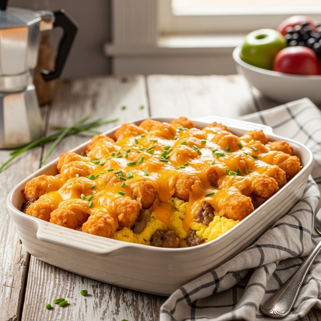 This Tater Tot Breakfast Casserole is the ultimate comfort breakfast—easy, cheesy, and packed with flavor. It’s perfect for busy mornings, family gatherings, or meal prep for the week.