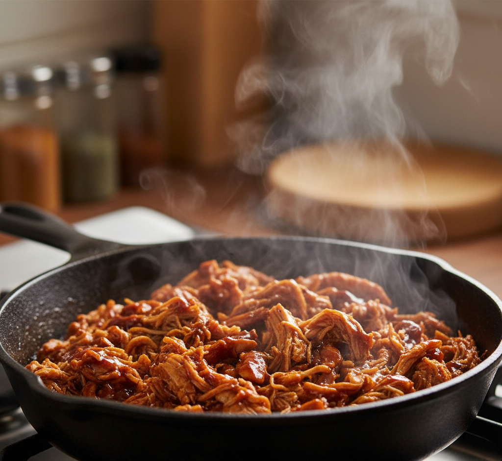 In a skillet over medium heat, combine shredded chicken and BBQ sauce. Stir until the chicken is fully coated and heated through.