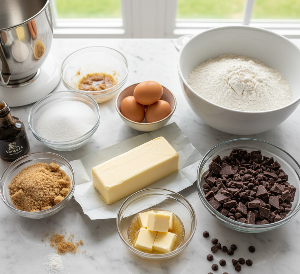 Ingredients for Brown Butter Scoopable Chocolate Chip Cookies