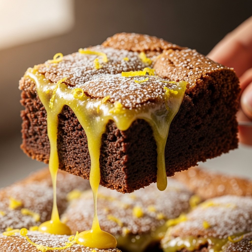 Mix powdered sugar, lemon juice, and zest until smooth, then drizzle over cooled brownies.