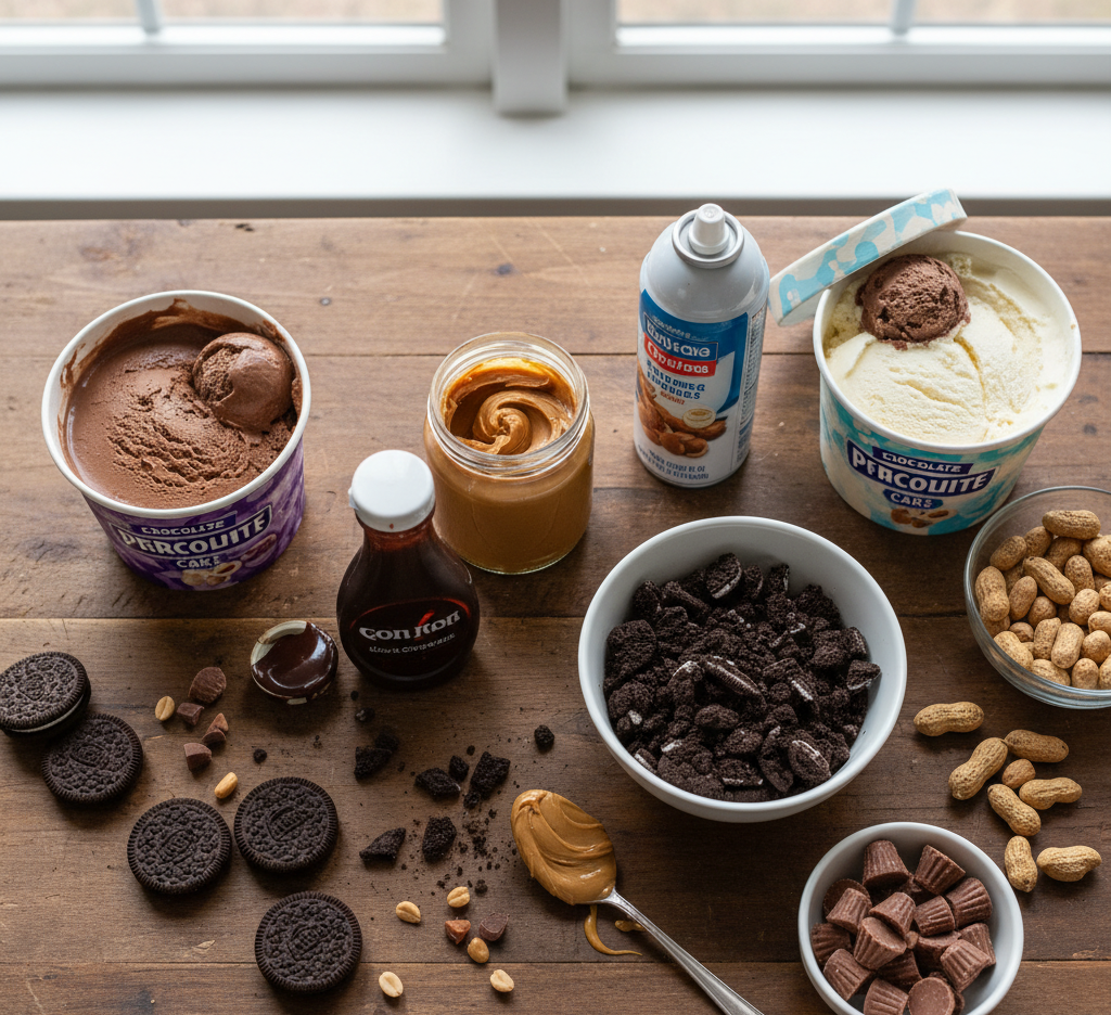For the cookie base, chocolate sandwich cookies create a sturdy, flavorful crust. You can also swap in chocolate graham crackers if preferred. The hot fudge and peanut butter layers add richness and help bind everything together.