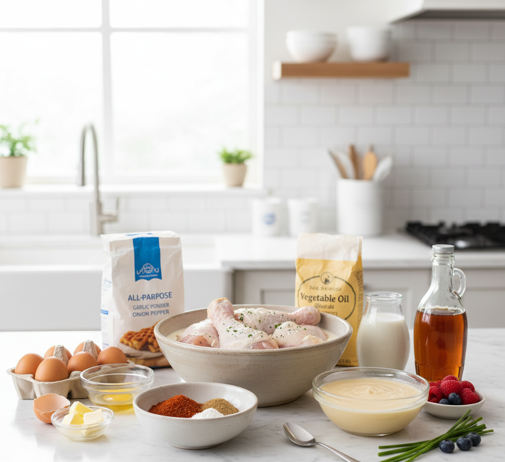Ingredients for Chicken and Waffles with Homemade Maple Syrup