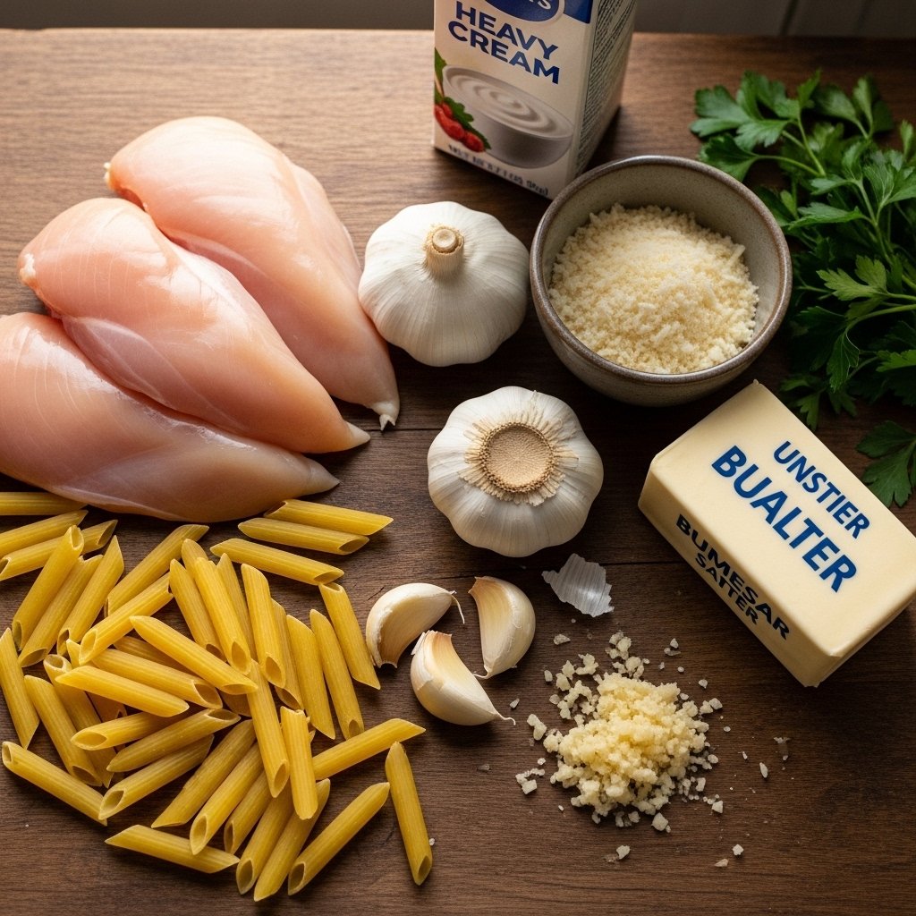 To make this delicious garlic parmesan chicken pasta, gather the following ingredients: