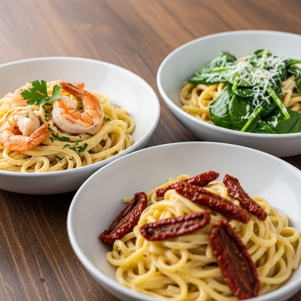 For a lighter version, use half-and-half instead of heavy cream. You can also swap chicken for shrimp or keep it vegetarian by adding mushrooms or spinach. Freshly grated Parmesan is highly recommended for the best flavor and texture.