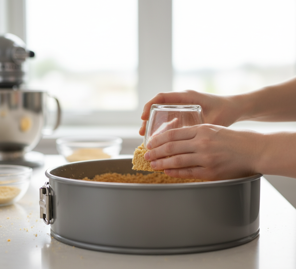 Crush the graham crackers into fine crumbs, then mix with melted butter and brown sugar. Press the mixture firmly into the bottom of a springform pan. Chill in the refrigerator for at least 30 minutes.