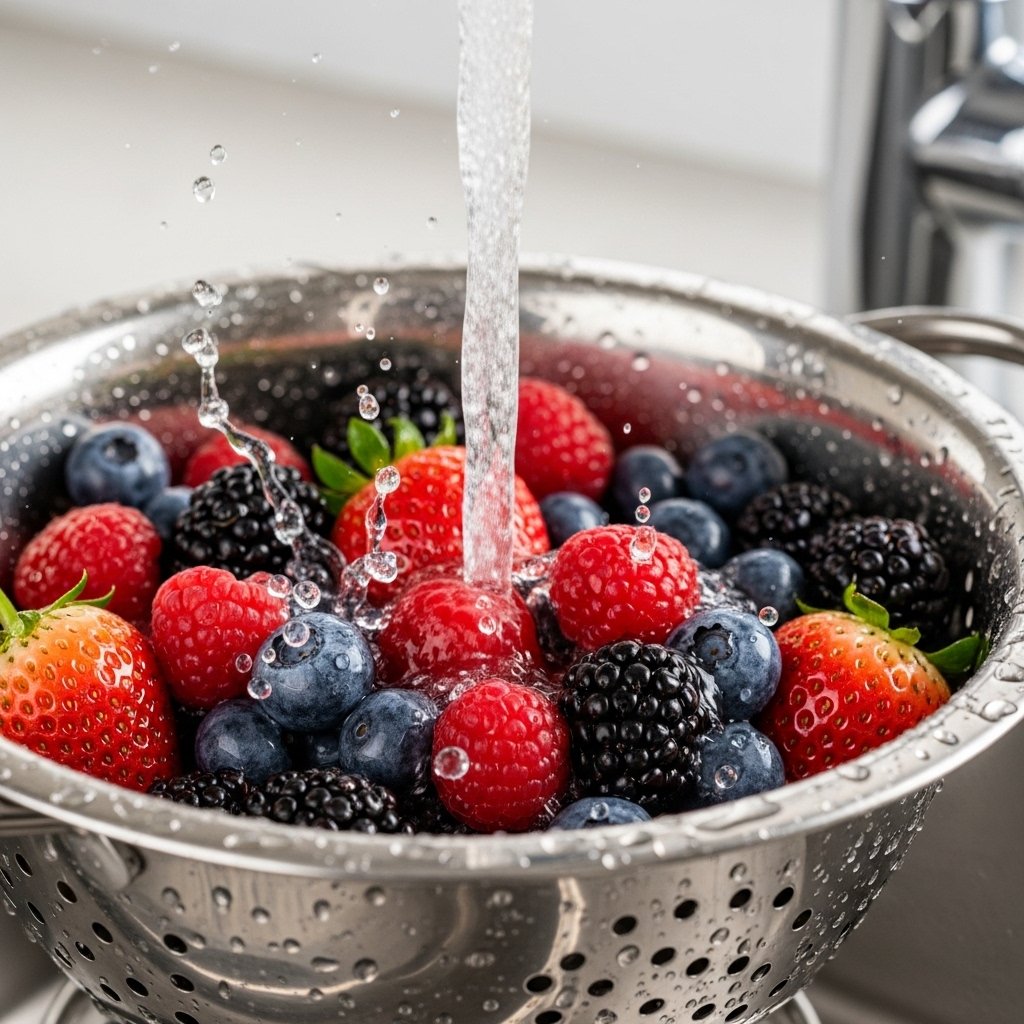 Wash all berries thoroughly and remove stems from strawberries. This ensures a clean and fresh taste in your milkshake.